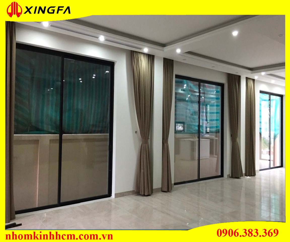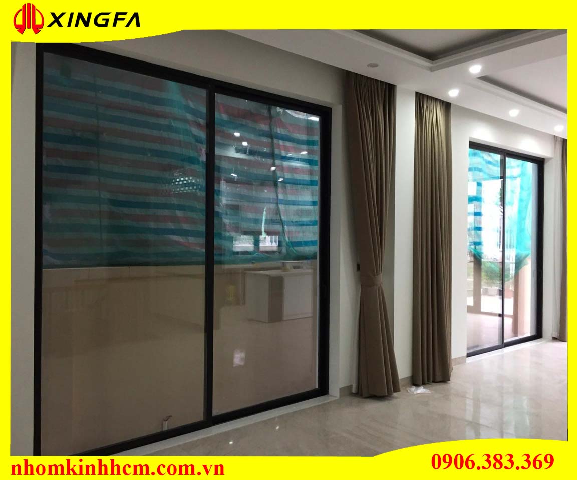 - + Cửa đi mở trượt 2 cánh nhôm Xingfa nhập khẩu nhẹ góp phần làm giảm tải trọng của công trình.