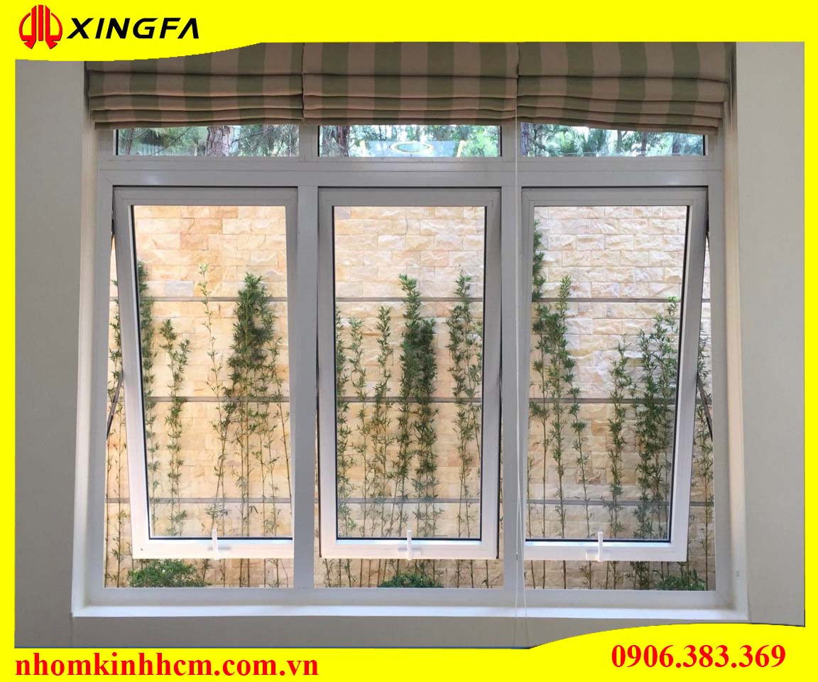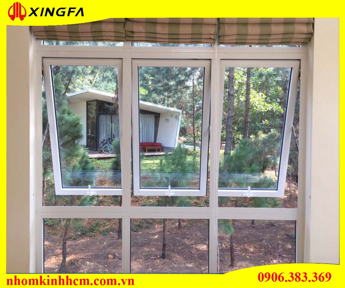 + Mẫu cửa sổ mở hất 3 cánh nhôm Xingfa có các ống dẫn nước hướng ra ngoài được thiết kế trên khung cửa sẽ ngăn nước chẩy vào bên trong một cách tối đa.